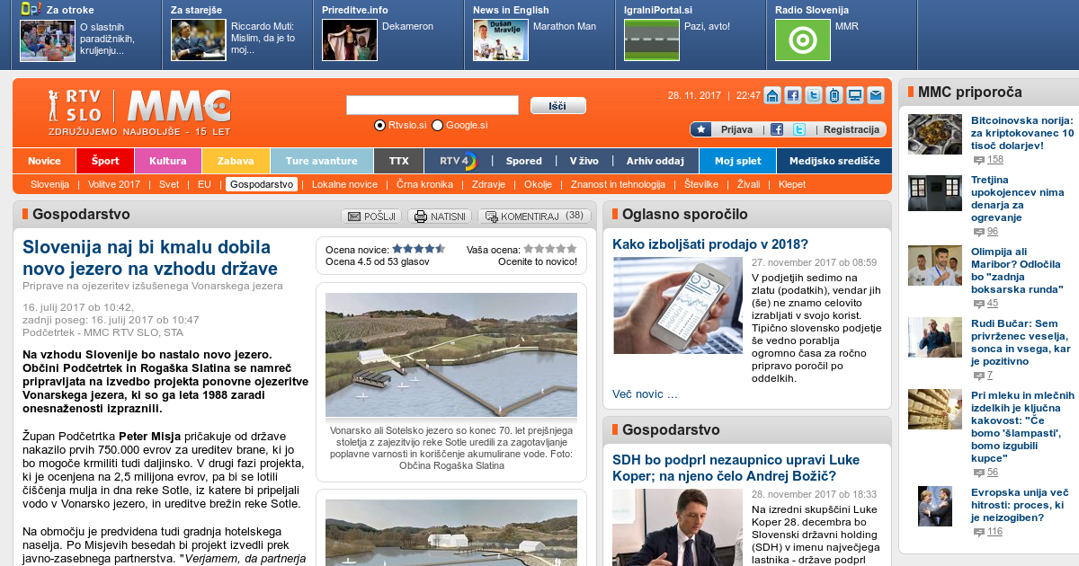 Slovenija naj bi kmalu dobila novo jezero na vzhodu države