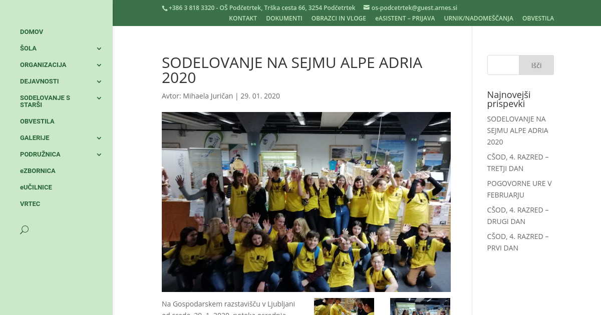 Na Gospodarskem razstavišču v Ljubljani od srede, 29. 1. 2020, poteka osrednja turistična prireditev v regiji. Med razstavljavci smo se v sklopu izbirnega predmeta turistična vzgoja predstavili tudi učenci OŠ Podčetrtek.