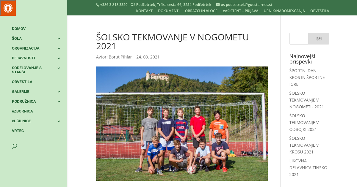 V četrtek, 23. septembra, smo izvedli šolsko tekmovanje v nogometu za učence. REZULTATI ŠOLSKEGA TEKMOVANJA V NOGOMETU