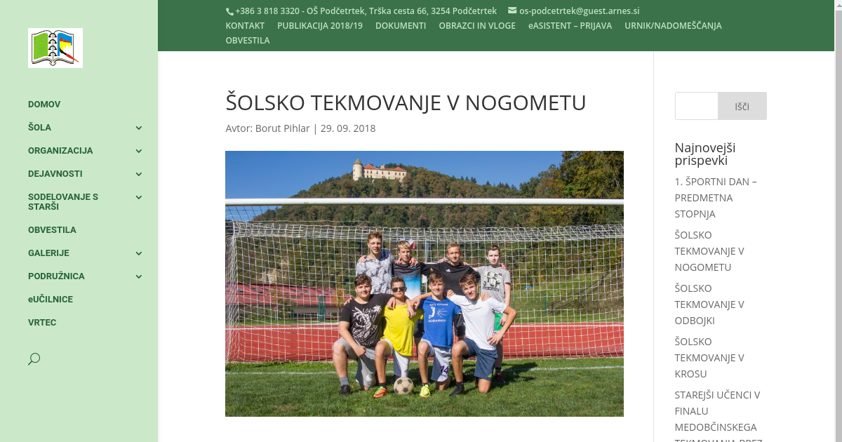 V petek, 28. septembra, smo izvedli šolsko tekmovanje v nogometu za učence. REZULTATI ŠOLSKEGA TEKMOVANJA V NOGOMETU