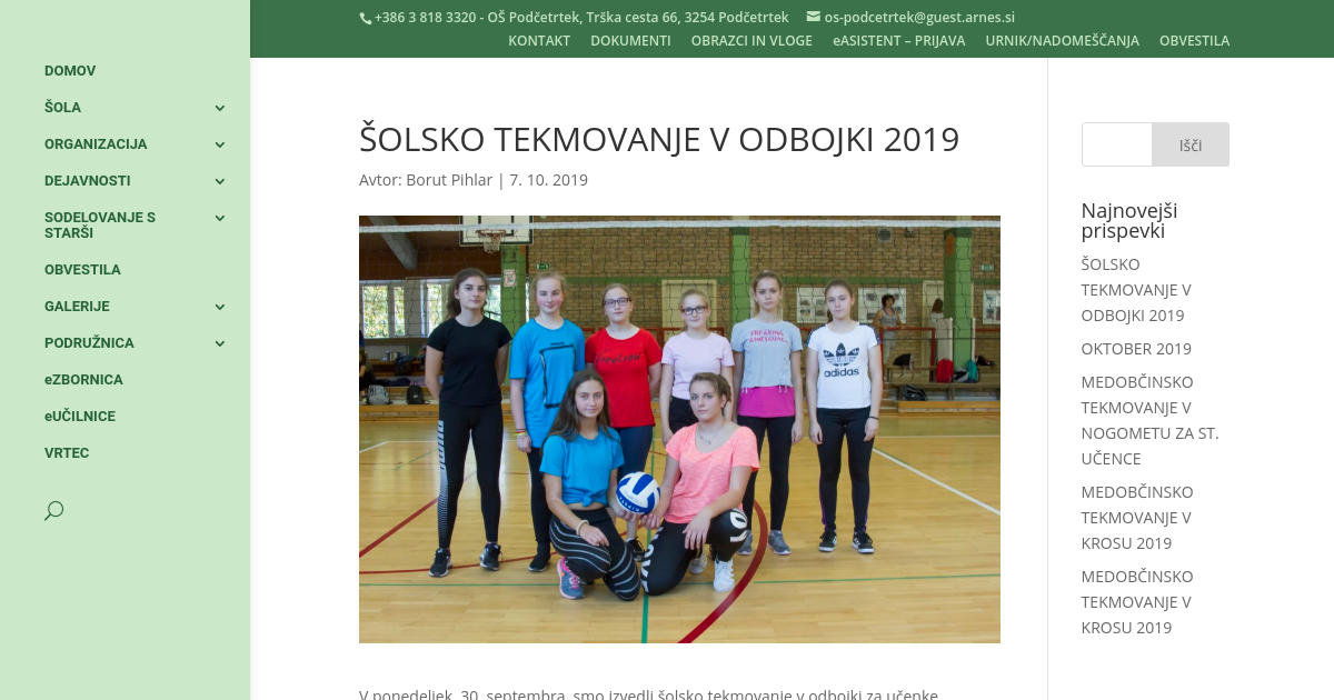 V ponedeljek, 30. septembra, smo izvedli šolsko tekmovanje v odbojki za učenke. REZULTATI ŠOLSKEGA TEKMOVANJA V ODBOJKI