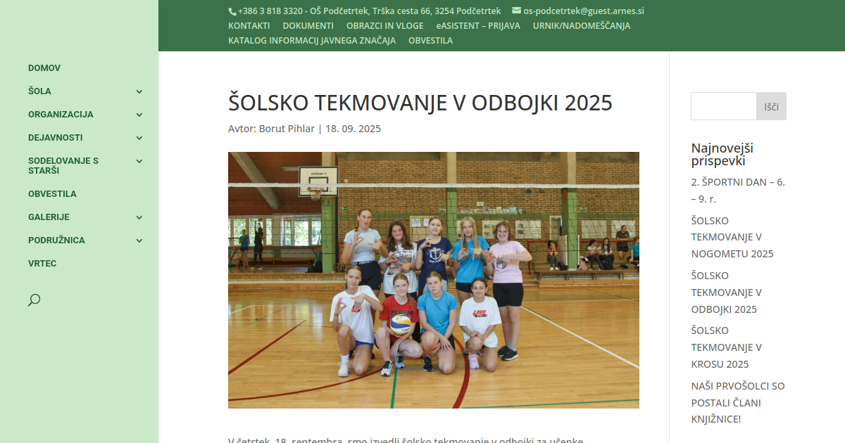 V četrtek, 18. septembra, smo izvedli šolsko tekmovanje v odbojki za učenke. REZULTATI ŠOLSKEGA TEKMOVANJA V ODBOJKI