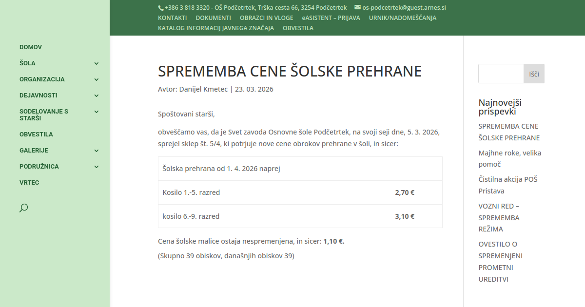SPREMEMBA CENE ŠOLSKE PREHRANE