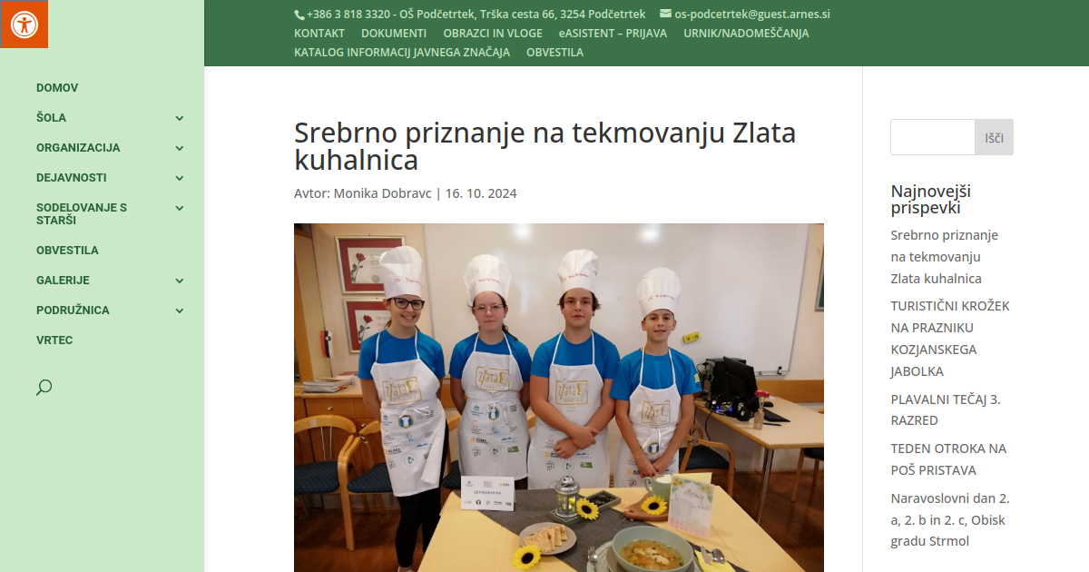 V sredo, 16. 10. 2024, so se Danaja Pušnik, Mark Lipar Arh, Lana Drozg in Kristjan Križan udeležili regijskega tekmovanja Zlata kuhalnica, ki je potekalo na Strokovnem izobraževalnem centru Alme M. Karlin v Celju.