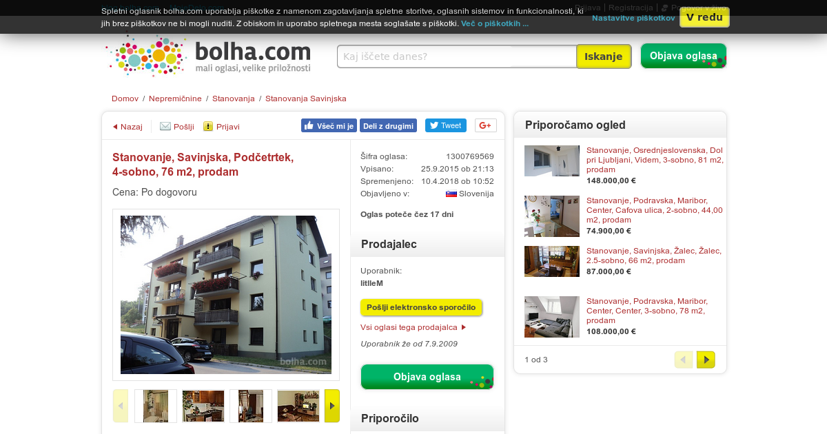 Tip: 4-sobno Velikost: 76, 00 m2 Leto izgradnje:1977 Nadstropje: 3