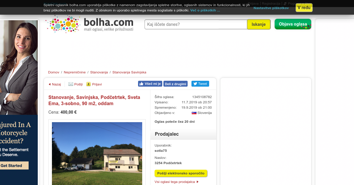 Kraj/naselje: Sveta Ema Tip: 3-sobno Velikost: 90, 00 m2 Leto izgradnje:1980 Zadnja adaptacija:2019 Nadstropje: 1
