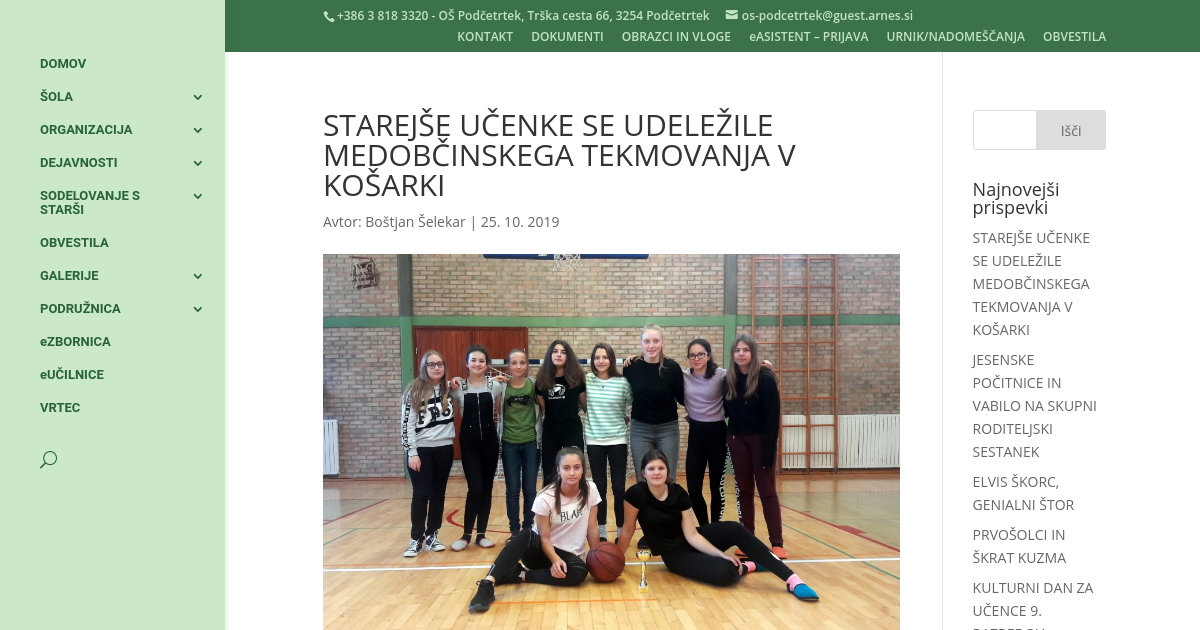 Na naši šoli košarke ne igrajo samo fantje, ampak sedaj že redno, nekaj let zapored hodimo na tekmovanja tudi z ekipo deklet. Tradicionalna je šola gostiteljica turnirja v košarki za starejša dekleta OŠ Šmarje pri Jelšah in tudi letos je bilo tako. Že pred odhodom na tekmovanje smo vedeli, da čaka naša dekleta težko delo, saj obe šoli nasprotnici spadata ne samo v področni, ampak tudi državni vrh. Toda naše košarkarice so odigrale pogumno, sicer zabeležile dva poraza, a povsem dostojno zastopale barve naše šole. Rezultat proti vrstnicam iz Šmarja pri Jelšah je bil 53:30, proti igralkam iz II. OŠ Rogaška Slatina 34:23.