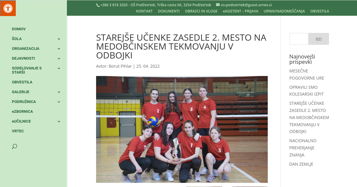 Osnovna šola Rogatec je gostila tudi medobčinsko tekmovanje v odbojki za starejše učenke. Naša ekipa je v prvi tekmi zanesljivo premagala domačinke iz OŠ Rogatec. V finalu pa so v izenačenem dvoboju morale priznati premoč vrstnicam iz OŠ Šmarje pri Jelšah in tako osvojile 2. mesto. Ekipo so sestavljale: Luna Lorger, Nina Boršič, Makalonca Bovha, Amadeja Jereb, Anja Turnšek, Pia Polutnik (kapetan), Lara Košir in Neža Mikulan. Čestitke.