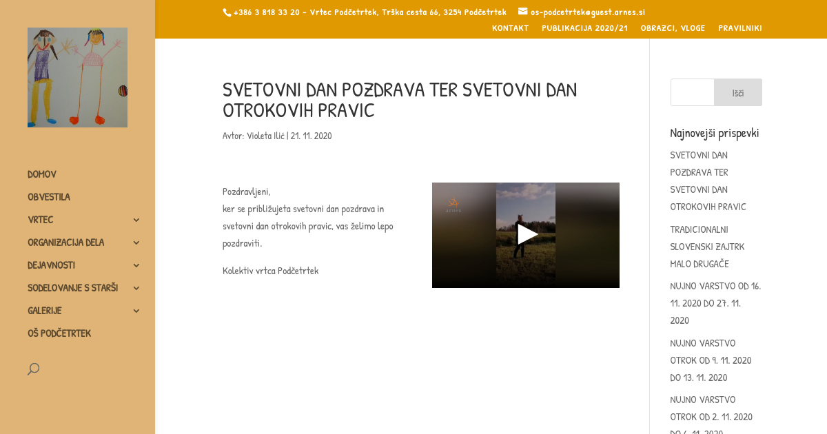 Pozdravljeni, ker se približujeta svetovni dan pozdrava in svetovni dan otrokovih pravic, vas želimo lepo pozdraviti.