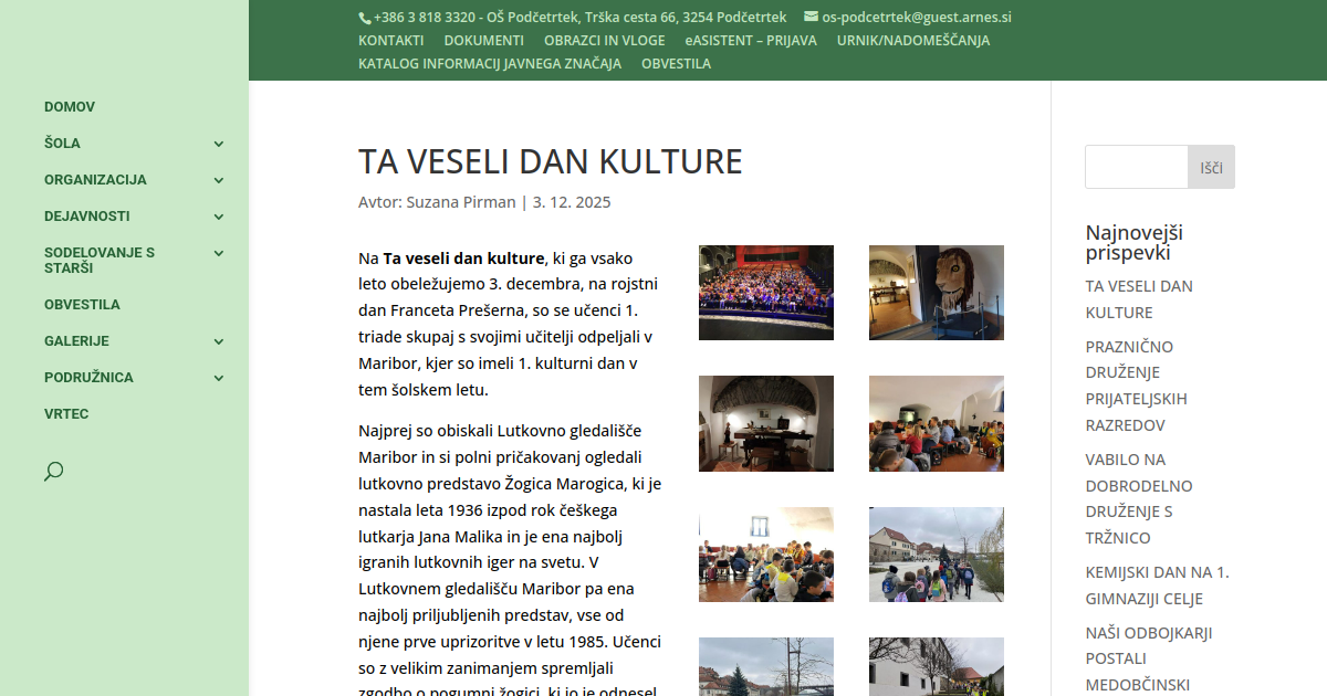 Na Ta veseli dan kulture, ki ga vsako leto obeležujemo 3. decembra, na rojstni dan Franceta Prešerna, so se učenci 1. triade skupaj s svojimi učitelji odpeljali v Maribor, kjer so imeli 1. kulturni dan v tem šolskem letu.