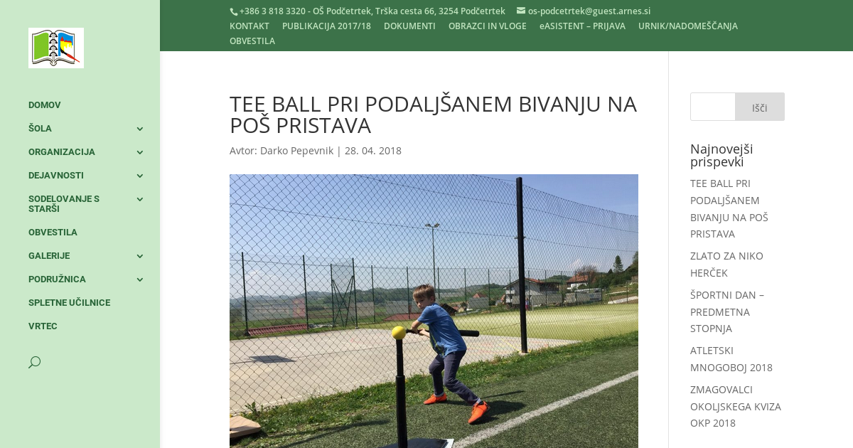 Tee Ball je šport, ki zabava in uči osnovne veščine baseballa (odbijanje žogice, tek na baze, metanje in lovljneje žogice). Gre za kolektiven šport. Igrajo ga dečki in deklice skupaj. Izvaja se lahko na vsaki ravni površini v prostoru ali zunaj (dvorišče, igrišče). Glede na vse elemente igre je dobra osnova za vse ostale športe. Predvsem pa gre za sodelovanje med učenci, ki je zelo pomembno.