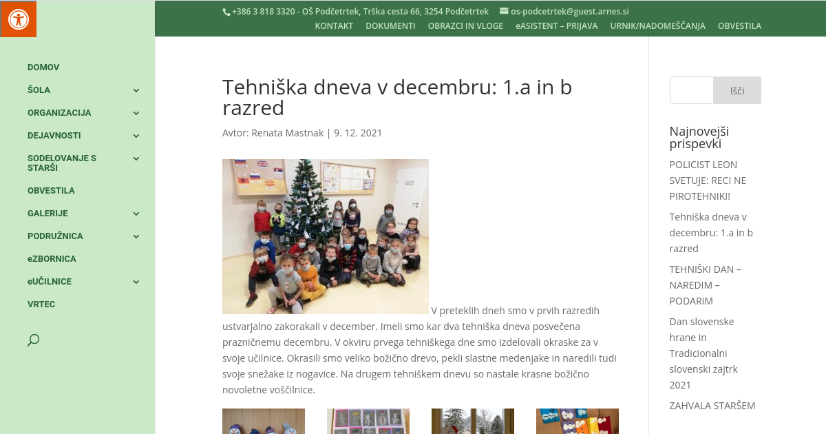 Tehniška dneva v decembru: 1.a in b razred