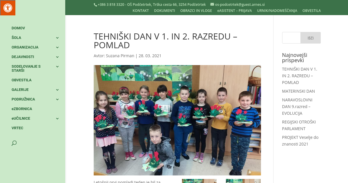 TEHNIŠKI DAN V 1. IN 2. RAZREDU – POMLAD