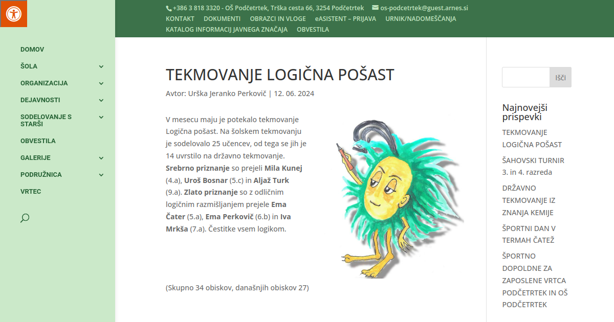 V mesecu maju je potekalo tekmovanje Logična pošast. Na šolskem tekmovanju je sodelovalo 25 učencev, od tega se jih je 14 uvrstilo na državno tekmovanje. Srebrno priznanje so prejeli Mila Kunej (4.a), Uroš Bosnar (5.c) in Aljaž Turk (9.a). Zlato priznanje so z odličnim logičnim razmišljanjem prejele Ema Čater (5.a), Ema Perkovič (6.b) in Iva Mrkša (7.a). Čestitke vsem logikom.