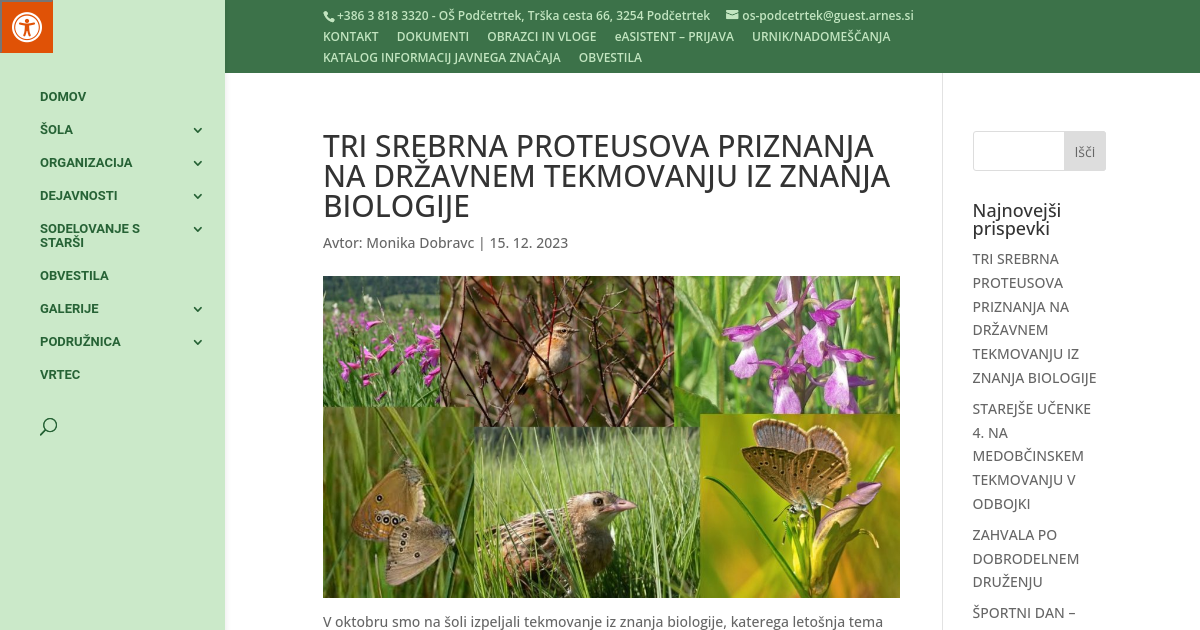 V oktobru smo na šoli izpeljali tekmovanje iz znanja biologije, katerega letošnja tema so bili vlažni travniki ter rastlinske in živalske vrste, ki le-te poseljujejo.