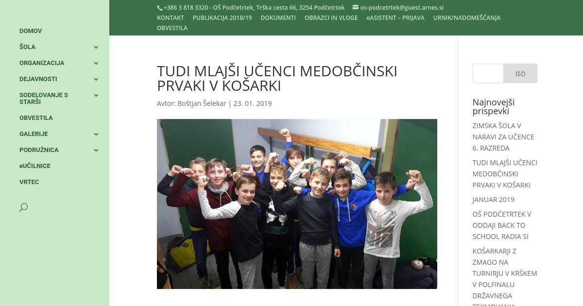 Po uspehu starejših učencev in njihove uvrstitve v polfinale državnega tekmovanja so dobro začeli svojo pot v tem šolskem letu tudi mlajši učenci. Na turnirju v Šmarju pri Jelšah so osvojili prvo mesto in se tako uvrstili na področno tekmovanje. Za napredovanje so najprej v napeti tekmi, po podaljških, premagali domačo osnovno šolo Šmarje pri Jelšah z rezultatom 42:38, nato pa bili boljši s 44:32 še od vrstnikov II. OŠ Rogaška.