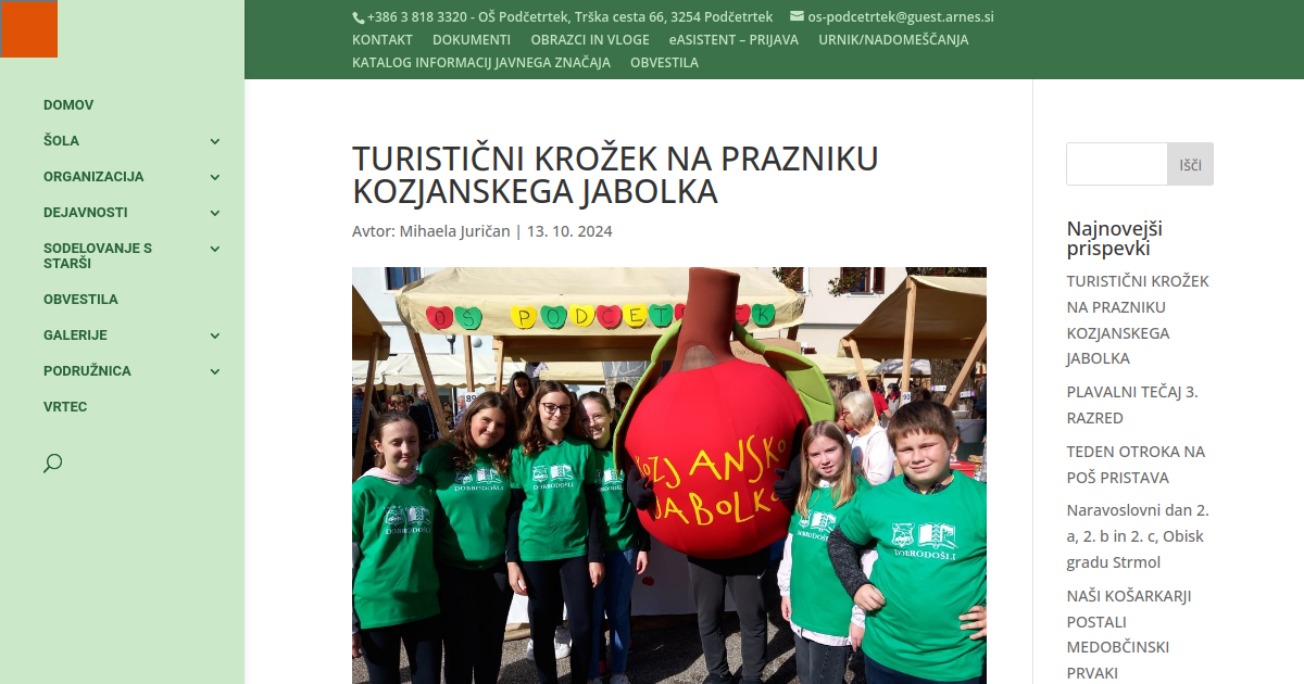 V razgibanem tednu otroka je svoje mesto našla tudi sejemska predstavitev ob Prazniku kozjanskega jabolka v Podsredi, kjer so šolo in kraj Podčetrtek predstavljali učenci interesne dejavnosti Turistični krožek.