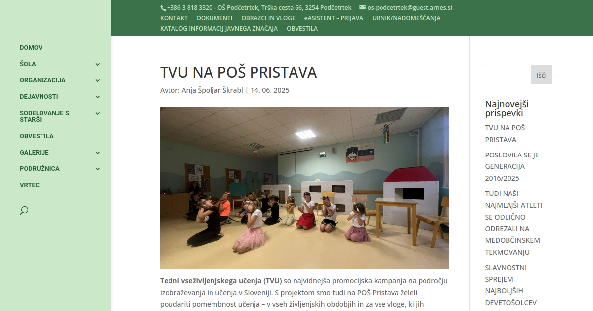 Tedni vseživljenjskega učenja (TVU) so najvidnejša promocijska kampanja na področju izobraževanja in učenja v Sloveniji. S projektom smo tudi na POŠ Pristava želeli poudariti pomembnost učenja – v vseh življenjskih obdobjih in za vse vloge, ki jih posameznik v svojem življenju prevzema. Letošnji slogan je ‘Slovenija, učeča se dežela’. Učenci so v petih delavnicah/dejavnostih spoznali nekatere ročne spretnosti, kulturno dediščino, ljudsko glasbo, gledališko igro in se povezovali ob branju ljudskih pesmi.