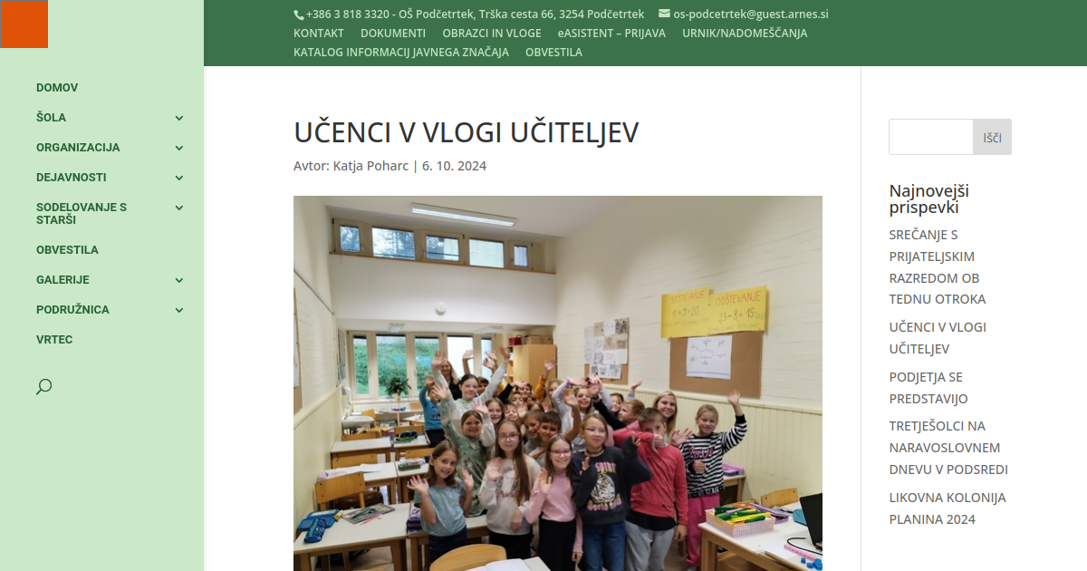 Ob svetovnem dnevu učiteljev, ki ga obeležujemo 5. oktobra, so se učenci 4. in 5. razredov preizkusili v vlogi učiteljev. Poučevali so mlajše učence od 1. do 3. razreda.