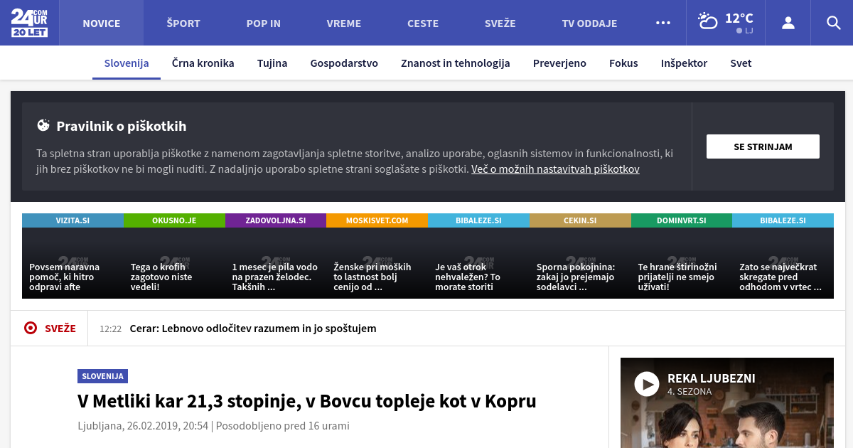 V Metliki kar 21,3 stopinje, v Bovcu topleje kot v Kopru