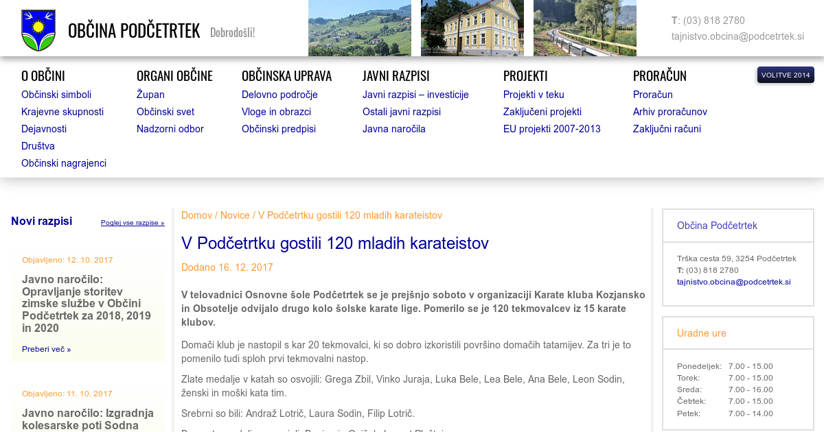 V telovadnici Osnovne šole Podčetrtek se je prejšnjo soboto v organizaciji Karate kluba Kozjansko in Obsotelje odvijalo drugo kolo šolske karate lige. Pomerilo se je 120 tekmovalcev iz 15 karate klubov. Domači klub je nastopil s kar 20 tekmovalci, ki so dobro izkoristili površino domačih tatamijev. Za tri je to pomenilo tudi sploh prvi tekmovalni nastop. Zlate