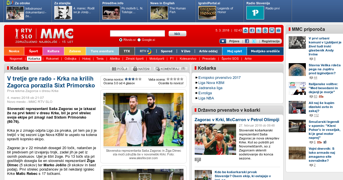 V tretje gre rado - Krka na krilih Zagorca porazila Sixt Primorsko
