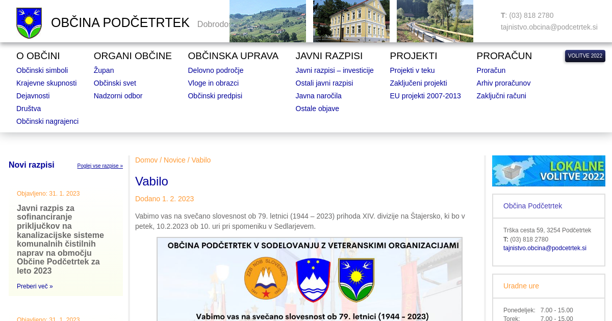 Vabimo vas na svečano slovesnost ob 79. letnici (1944 – 2023) prihoda XIV. divizije na Štajersko, ki bo v petek, 10.2.2023 ob 10. uri pri spomeniku v Sedlarjevem.