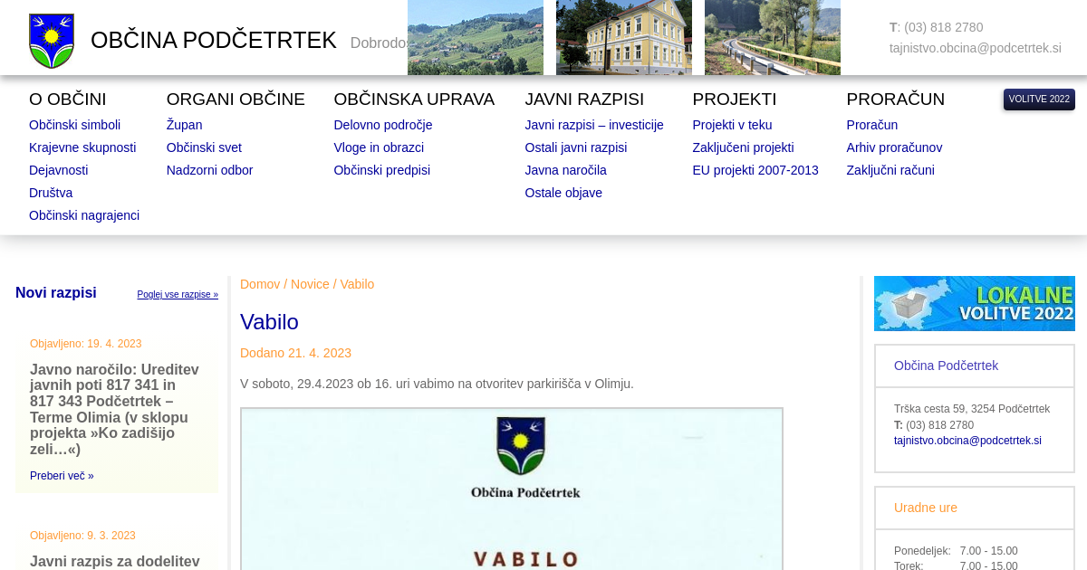 V soboto, 29.4.2023 ob 16. uri vabimo na otvoritev parkirišča v Olimju.