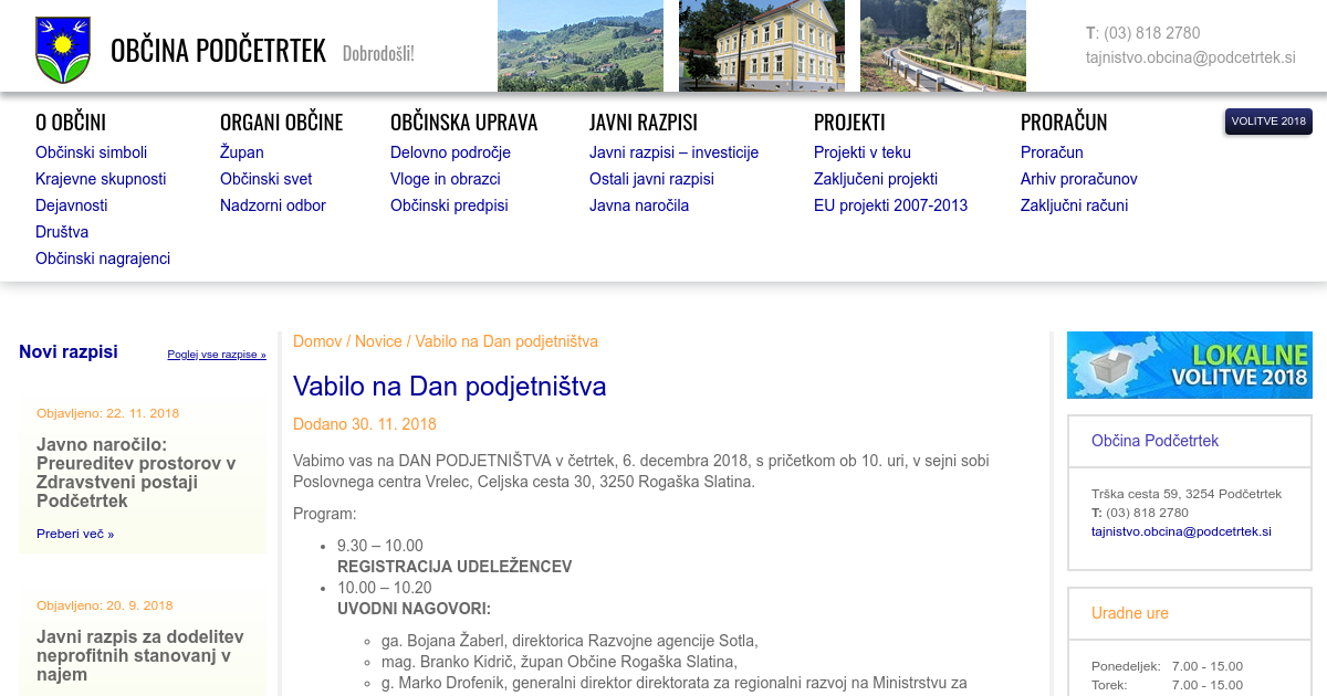 Vabimo vas na DAN PODJETNIŠTVA v četrtek, 6. decembra 2018, s pričetkom ob 10. uri, v sejni sobi Poslovnega centra Vrelec, Celjska cesta 30, 3250 Rogaška Slatina. Program: 9.30 – 10.00 REGISTRACIJA UDELEŽENCEV 10.00 – 10.20 UVODNI NAGOVORI: ga. Bojana Žaberl, direktorica Razvojne agencije Sotla, mag. Branko Kidrič, župan Občine Rogaška Slatina, g. Marko Drofenik,