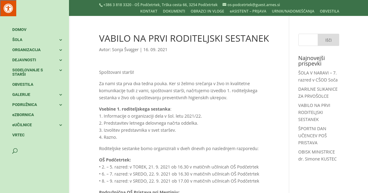 VABILO NA PRVI RODITELJSKI SESTANEK