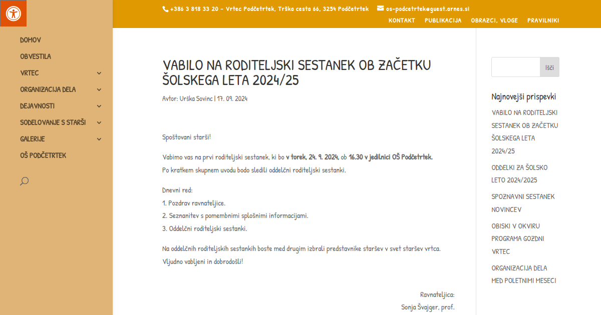 VABILO NA RODITELJSKI SESTANEK OB ZAČETKU ŠOLSKEGA LETA 2024/25