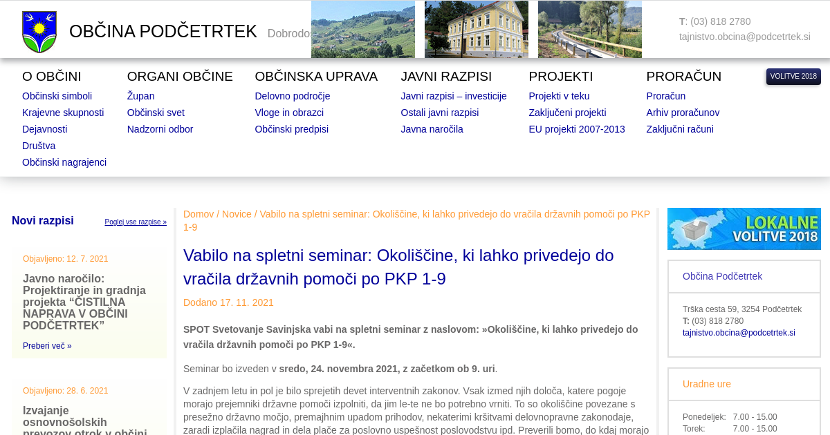 SPOT Svetovanje Savinjska vabi na spletni seminar z naslovom: »Okoliščine, ki lahko privedejo do vračila državnih pomoči po PKP 1-9«. Seminar bo izveden v sredo, 24. novembra 2021, z začetkom ob 9. uri. V zadnjem letu in pol je bilo sprejetih devet interventnih zakonov. Vsak izmed njih določa, katere pogoje morajo prejemniki državne pomoči izpolniti, da jim