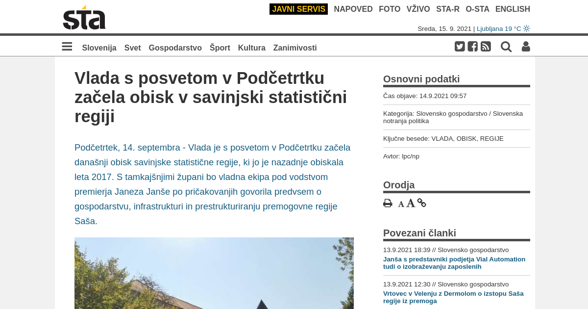 Vlada je s posvetom v Podčetrtku začela današnji obisk savinjske statistične regije, ki jo je nazadnje obiskala leta 2017. S tamkajšnjimi župani bo vladna ekipa pod vodstvom premierja Janeza Janše po pričakovanjih govorila predvsem o gospodarstvu, infrastrukturi in prestrukturiranju premogovne regije Saša.