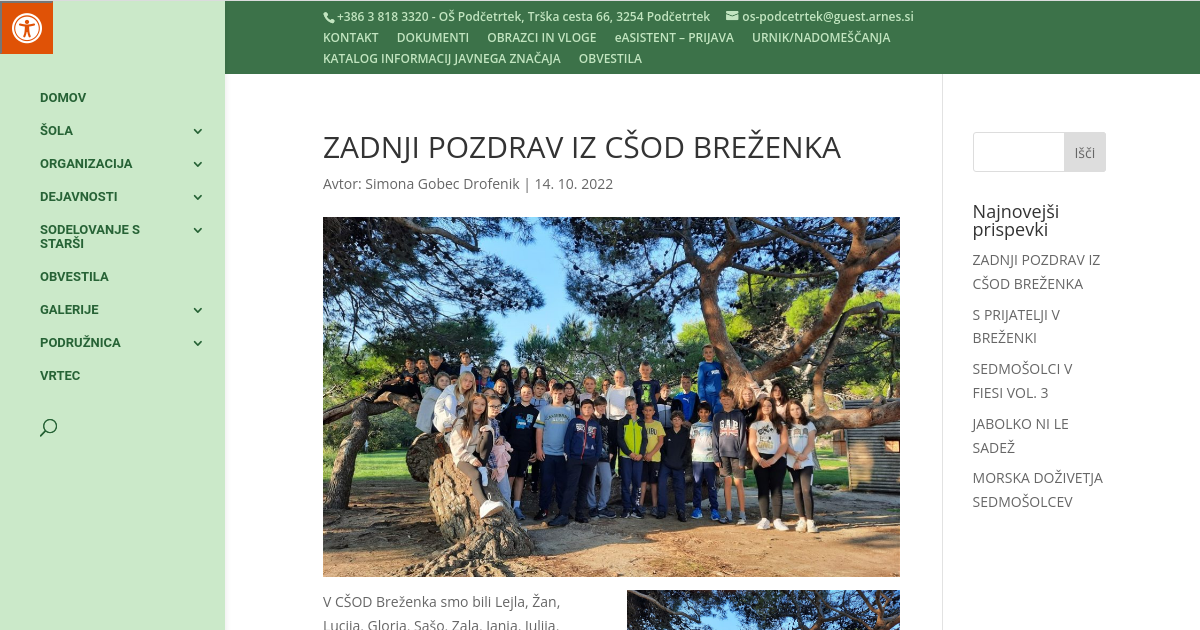 V CŠOD Breženka smo bili Lejla, Žan, Lucija, Gloria, Sašo, Zala, Janja, Julija, Lovro G., Nadja, Domen, Ana, Lana, Laura, Tilen, Petra, Matic, Miha, Žiga, Anej Š., Gal, Lovro B. H., Lana B., Anej C., Lara, Vid, Melani, Jakob, Lana H., Tjan, Vinko, Maša, Patrik, Dejan, Maja, Jure, Jaka, Nika, Lea ter Larisa in učiteljici, spremljevalki, fotografinji in še kaj… Monika ter Simona.