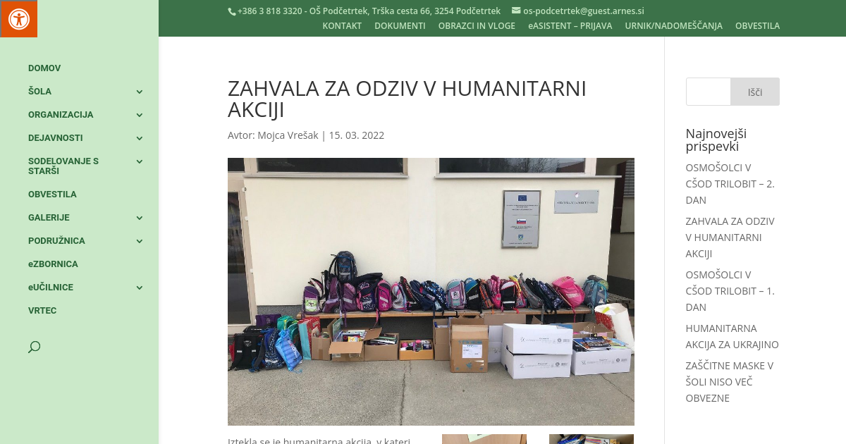 Iztekla se je humanitarna akcija, v kateri smo vsi skupaj pokazali pravi pomen medsebojne pomoči in solidarnosti. Skupaj smo zbrali veliko količino šolskih potrebščin, s katerimi bomo vsaj malo pomagali družinam in otrokom v stiski zaradi vojne v Ukrajini.