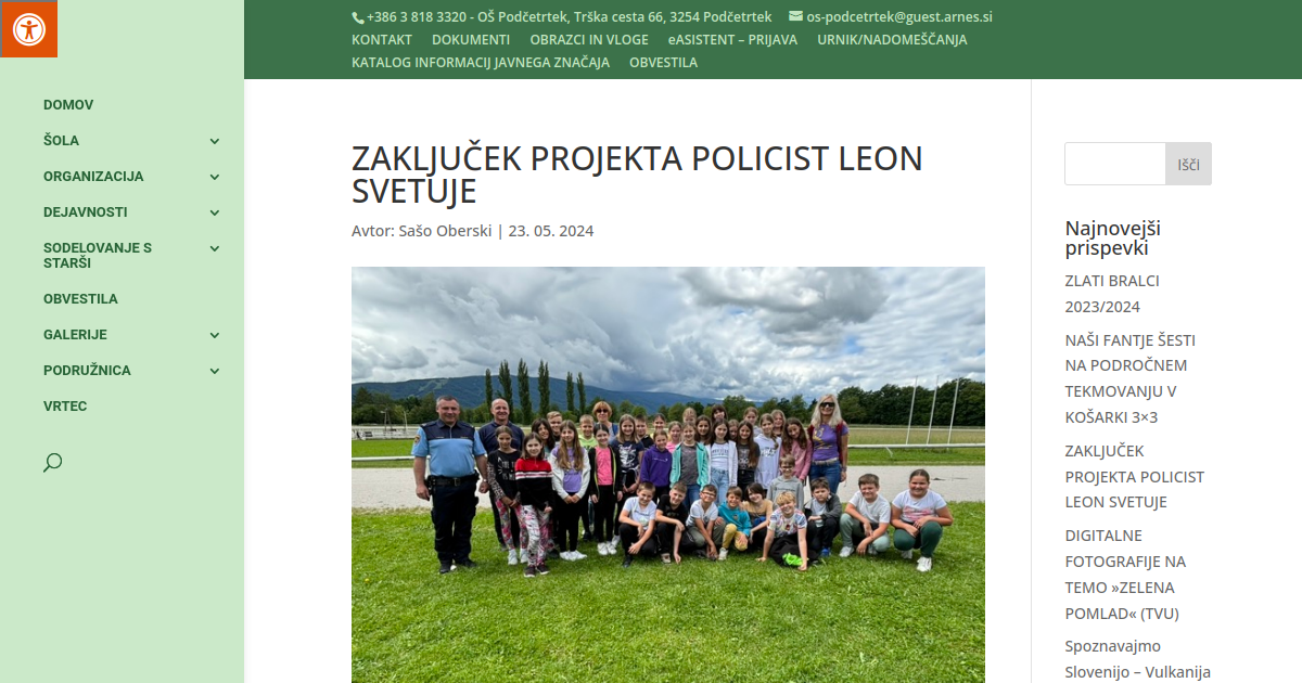 Učenci 5. razreda matične in podružnične šole so sodelovali v projektu Policist Leon svetuje. Preventivni projekt Policist Leon svetuje so zasnovali na Policijski upravi Slovenj Gradec. Pri vsebinski pripravi in oceni projekta je sodelovalo tudi Ministrstvo za šolstvo in šport. Projekt je namenjen učencem in učenkam petega razreda devetletnega programa osnovne šole, kar pomeni, da naj bi vsako leto sodelovalo približno 20.000 učencev. Nosilec projekta je Uprava uniformirane policije, izvajalci pa so policijske uprave oziroma policijske postaje v sodelovanju z osnovnimi šolami.