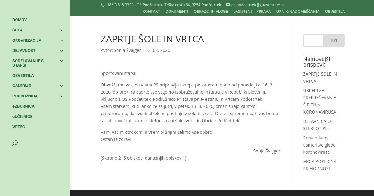 ZAPRTJE ŠOLE IN VRTCA