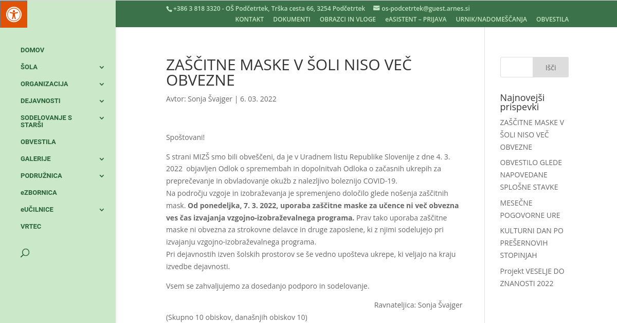 ZAŠČITNE MASKE V ŠOLI NISO VEČ OBVEZNE
