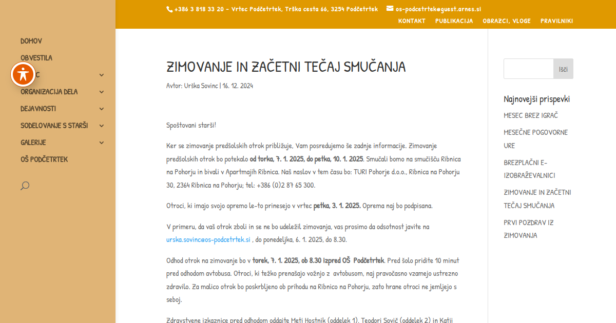ZIMOVANJE IN ZAČETNI TEČAJ SMUČANJA