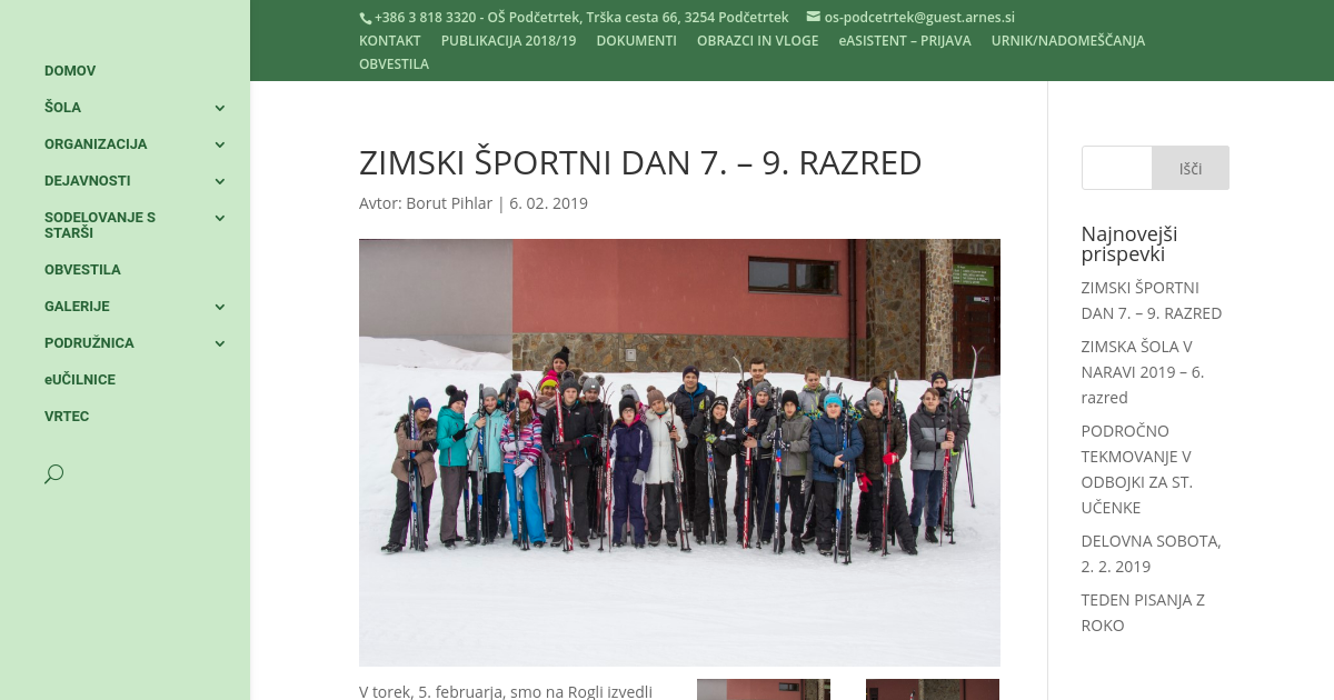 V torek, 5. februarja, smo na Rogli izvedli zimski športni dan za učence 7., 8. in 9. razreda. Sedmošolci so obnovili svoje znanje alpskega smučanja, osmošolci so tekli in lovili ravnotežje na ozkih tekaških smučeh, devetošolci pa so pod strokovnim vodstvom g. Iztoka Bregarja raziskovali zasneženo Pohorje na krpljah. Vsi skupaj pa preživeli prijeten dan v zimski naravi.