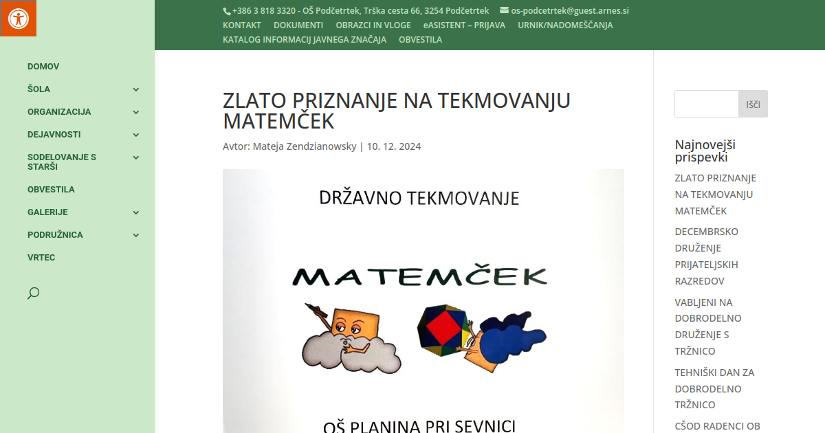 Tekmovanje Matemček je matematično tekmovanje iz prostorske predstavljivosti. Šolsko tekmovanje je bilo v prvi polovici novembra, na naši šoli se ga je udeležilo 13 učencev. Štiri učenke so se uvrstile na državno tekmovanje, ki je potekalo 23. novembra 2024 na OŠ Planina pri Sevnici.