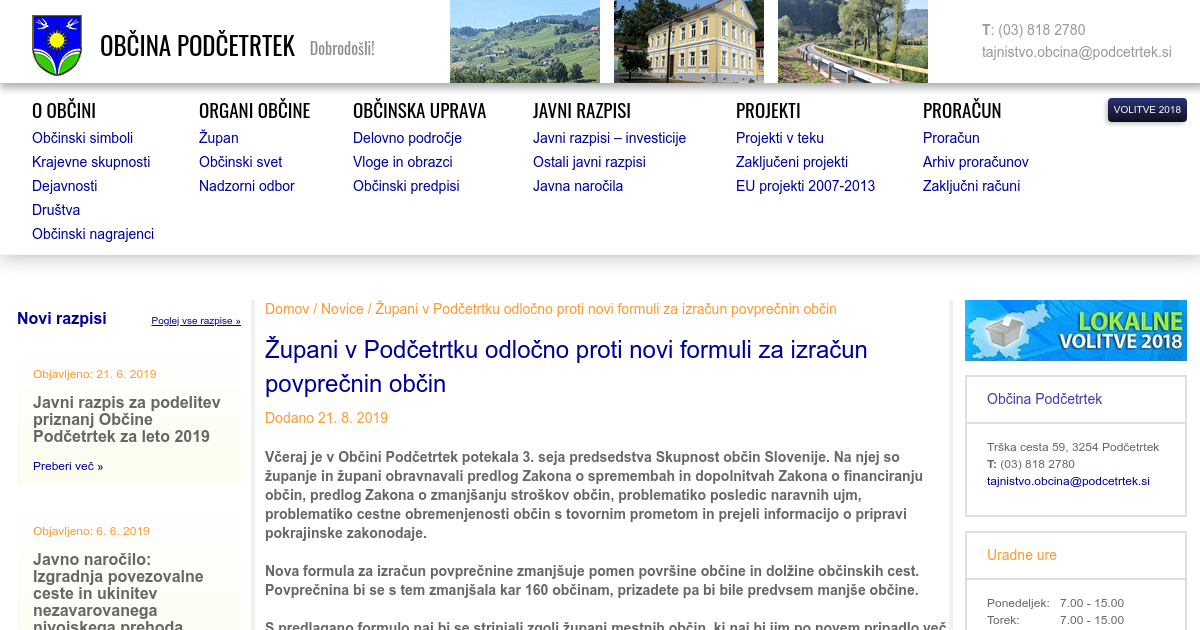 Včeraj je v Občini Podčetrtek potekala 3. seja predsedstva Skupnost občin Slovenije. Na njej so županje in župani obravnavali predlog Zakona o spremembah in dopolnitvah Zakona o financiranju občin, predlog Zakona o zmanjšanju stroškov občin, problematiko posledic naravnih ujm, problematiko cestne obremenjenosti občin s tovornim prometom in prejeli informacijo o pripravi pokrajinske zakonodaje. Nova formula